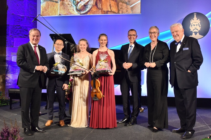 Karl V., auf dessen Krönung das alljährliche Festmahl Bezug nimmt, wurde am 23. Oktober 1520 in Aachen gekrönt. Coronabedingt mit einem Jahr Verspätung begann das 500. Jubiläum mit einem besonderen Programm. Und zwar im Dom, dort, wo damals auch die eigentliche Krönung jeweils stattfand. Nach einem festlichen Konzert geleiteten Stadtreiter und Stadtgarde Öcher Duemjroefe die Gäste zum Rathaus, in den Krönungssaal. Gastredner gab es zum Jubiläumsmahl gleich zwei. Der scheidende NRW-Ministerpräsident Armin Laschet und der Mittelalterhistoriker Prof. Harald Müller sprachen über die vielfältigen Einflüsse, die sich in Aachen zu einem starken Fundament für Europa verbunden haben – und natürlich über die Krönung Karls V. und ihre Bedeutung bis heute. Musikalisch begeisterten Gabriel Yeo sowie Helene und Wilhelmine Freytag das Publikum, das von einem Vier-Gänge-Menü verwöhnt wurde. Georg Helg führte zum letzten Mal durch den Abend. „Man soll gehen, wenn es am Schönsten ist“, so Helg. Allerdings nicht ohne noch zu verkünden, dass der Rathausverein in den letzten Jahren insgesamt 2 Millionen Euro für den Erhalt des Rathauses eingesammelt und investiert hat. Nicht zuletzt dank des Krönungsmahls und seiner Hauptsponsoren Babor, DSA und Pro Idee.