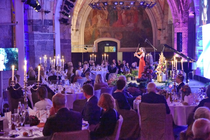 Karl V., auf dessen Krönung das alljährliche Festmahl Bezug nimmt, wurde am 23. Oktober 1520 in Aachen gekrönt. Coronabedingt mit einem Jahr Verspätung begann das 500. Jubiläum mit einem besonderen Programm. Und zwar im Dom, dort, wo damals auch die eigentliche Krönung jeweils stattfand. Nach einem festlichen Konzert geleiteten Stadtreiter und Stadtgarde Öcher Duemjroefe die Gäste zum Rathaus, in den Krönungssaal. Gastredner gab es zum Jubiläumsmahl gleich zwei. Der scheidende NRW-Ministerpräsident Armin Laschet und der Mittelalterhistoriker Prof. Harald Müller sprachen über die vielfältigen Einflüsse, die sich in Aachen zu einem starken Fundament für Europa verbunden haben – und natürlich über die Krönung Karls V. und ihre Bedeutung bis heute. Musikalisch begeisterten Gabriel Yeo sowie Helene und Wilhelmine Freytag das Publikum, das von einem Vier-Gänge-Menü verwöhnt wurde. Georg Helg führte zum letzten Mal durch den Abend. „Man soll gehen, wenn es am Schönsten ist“, so Helg. Allerdings nicht ohne noch zu verkünden, dass der Rathausverein in den letzten Jahren insgesamt 2 Millionen Euro für den Erhalt des Rathauses eingesammelt und investiert hat. Nicht zuletzt dank des Krönungsmahls und seiner Hauptsponsoren Babor, DSA und Pro Idee.